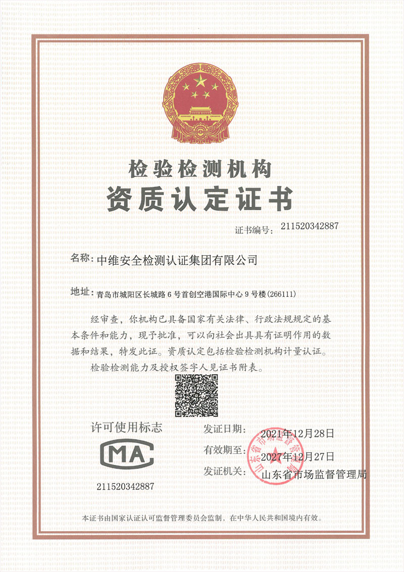 中維安全檢測認證集團有限公司(總部地址一):青島市城陽區長城路6號首創(chuàng)空港國際中心9號樓